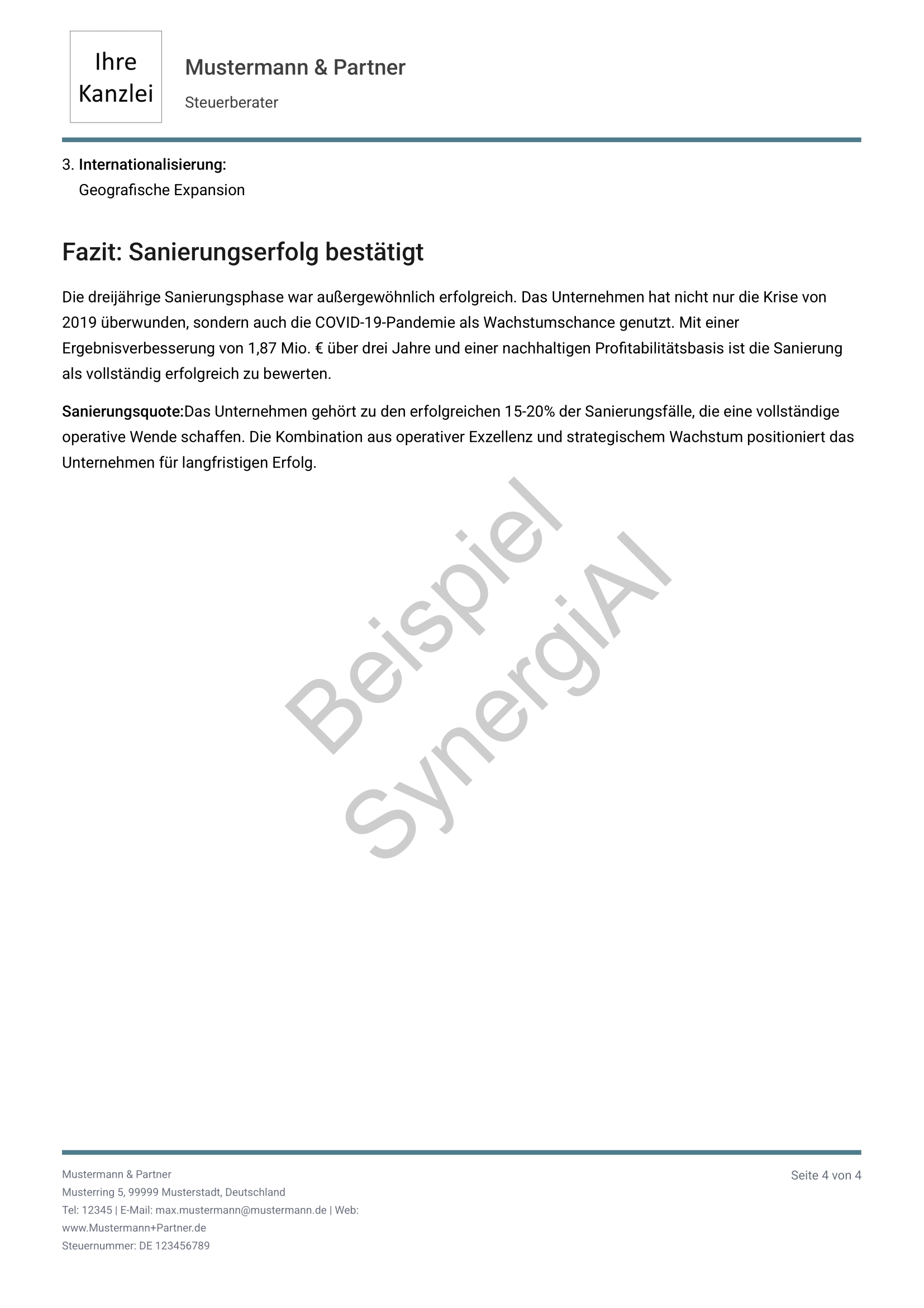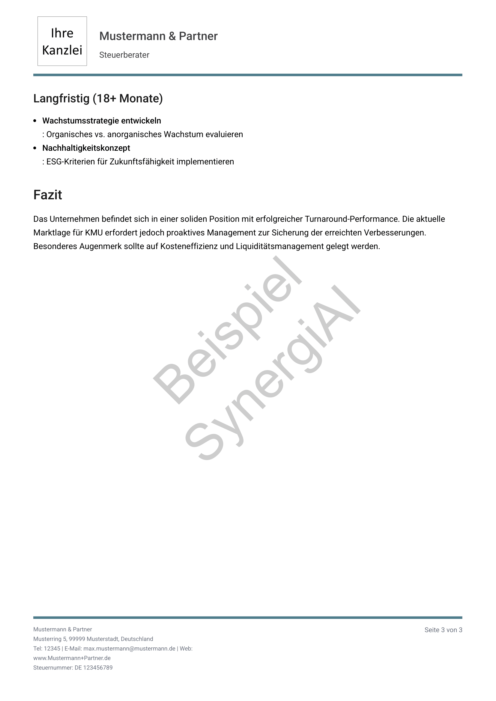 Analyse einer dreijährigen Entwicklung mit klarer Bewertung des Sanierungserfolgs und strategischen Folgeempfehlungen.