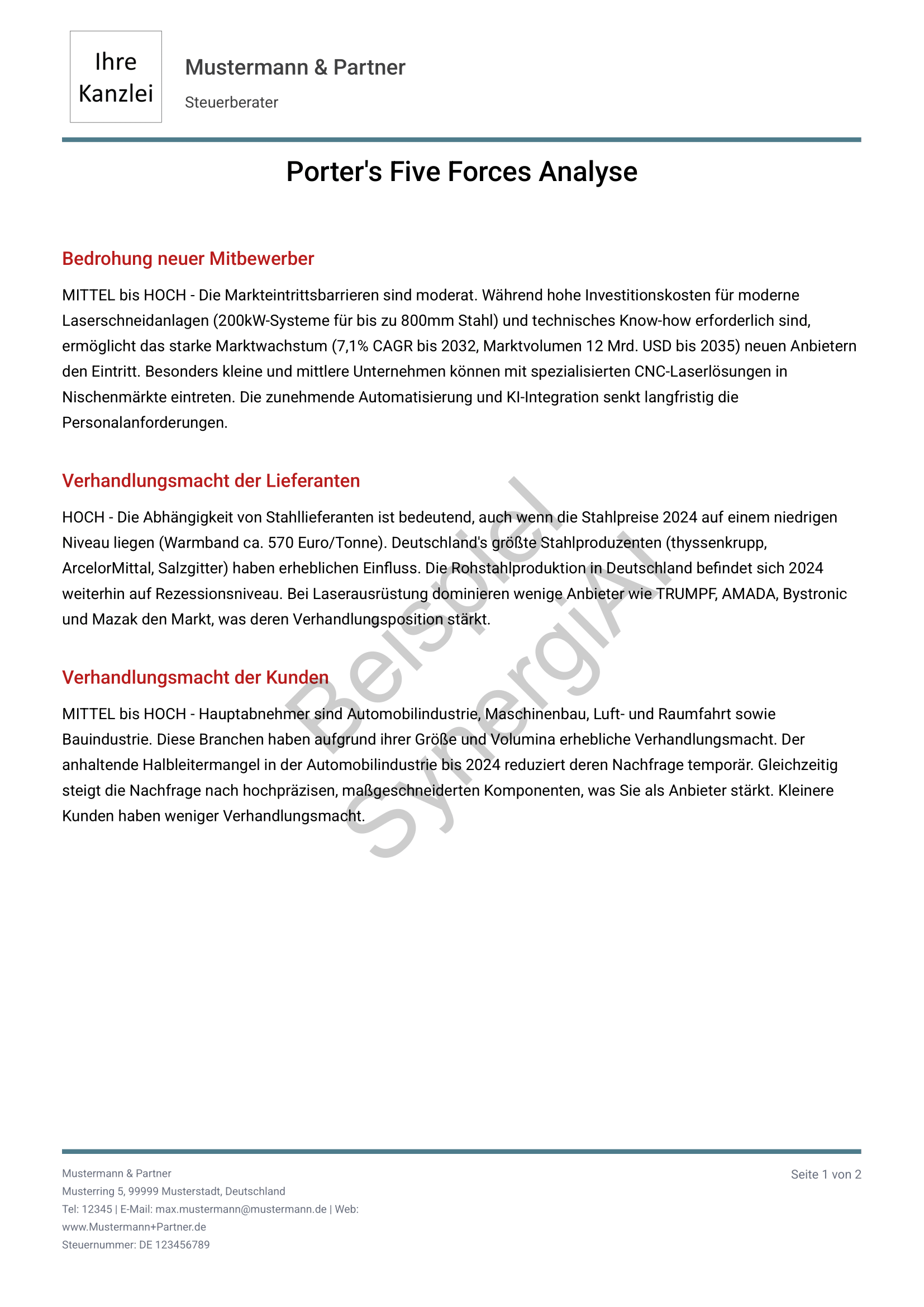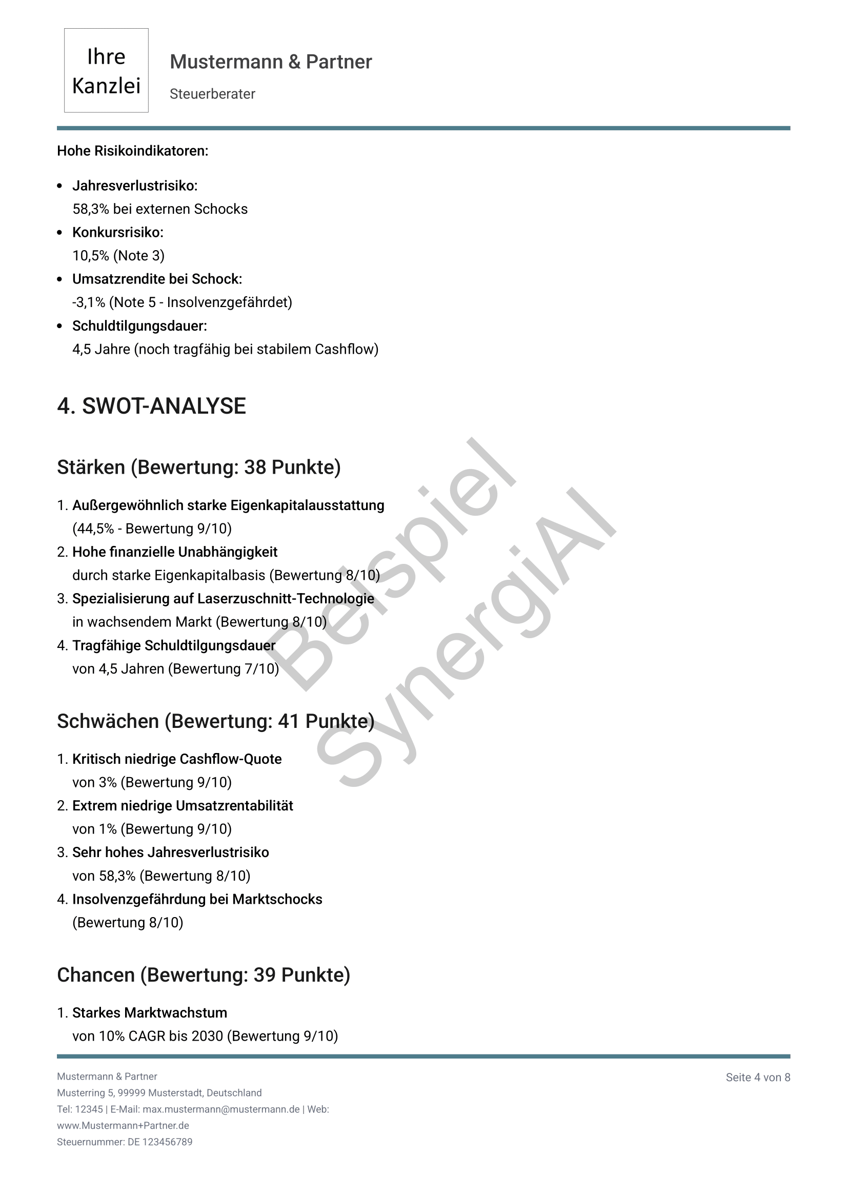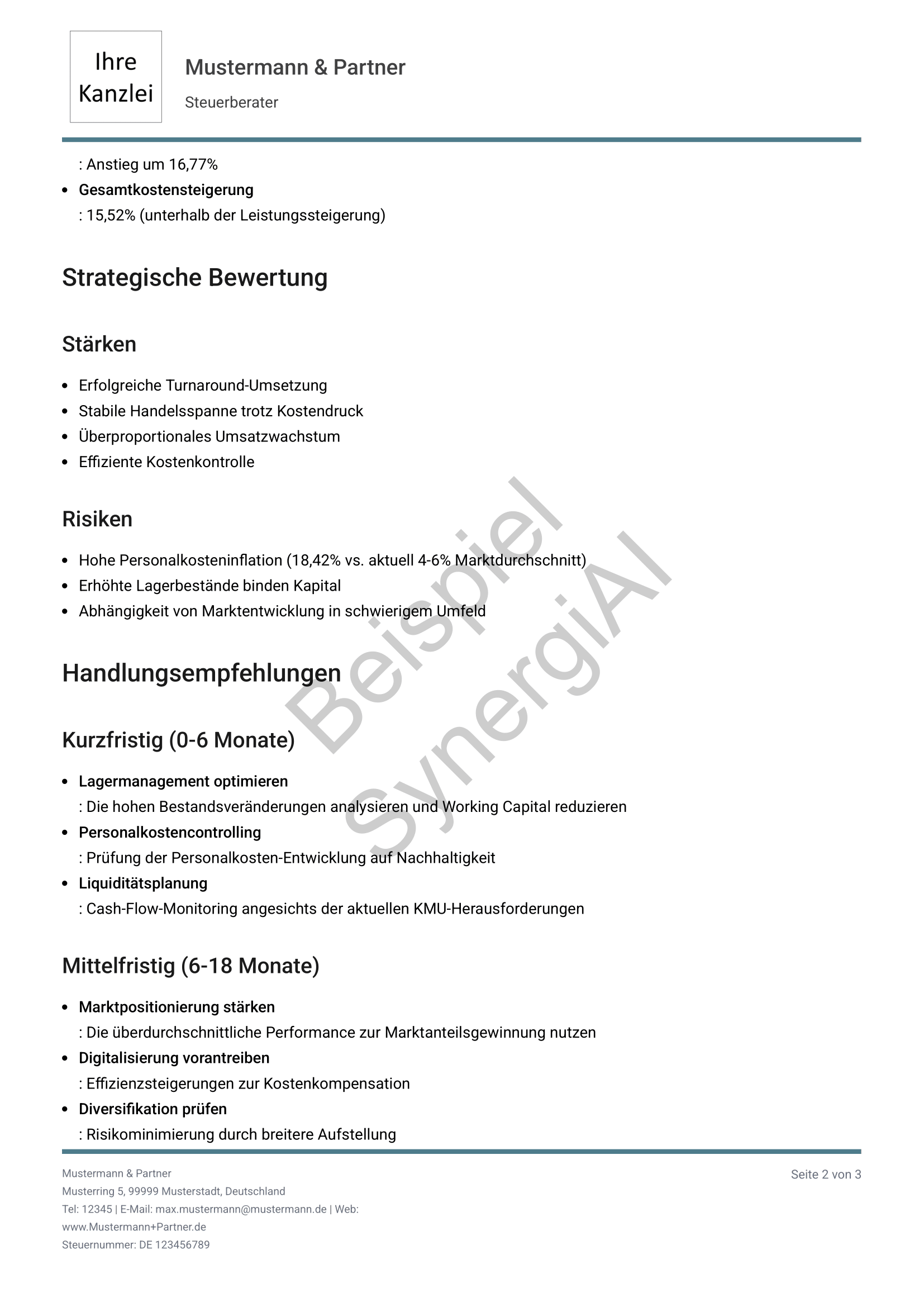 Alle Beispiele entstehen aus realen Steuerberaterdaten – automatisch generiert, individuell interpretierbar.